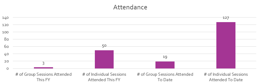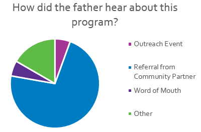 | Goal: 20 fathers receive individual support services Current total: 17 fathers/85% | Goal on Track |
